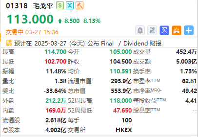 毛戈平涨超8%,全年业绩披露在即,机构看好公司实现业绩突破。