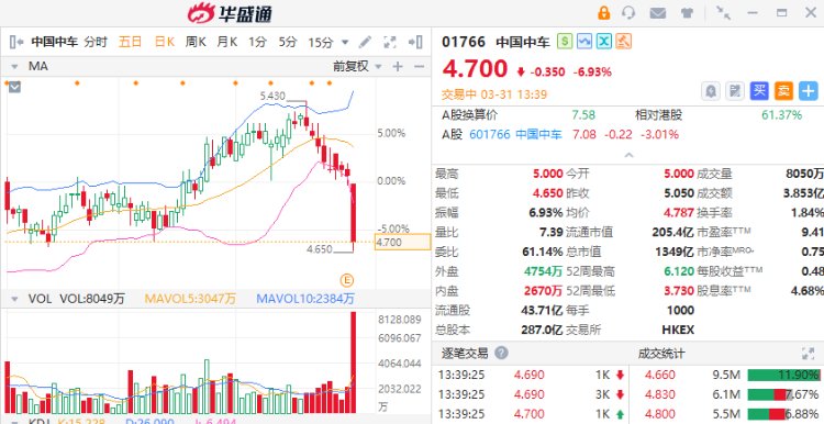3月31日讯,港股中国中车午后跌幅扩大至7%,公司上周五披露Q4及全年业绩。