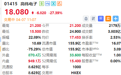 财联社4月7日讯(编辑 胡家荣)受特朗普关税政策影响,港股苹果概念股今日延续调整。截至发稿,子(01415.HK)、富智康集团(02038.HK)、瑞声科技(02018.HK)、比亚迪电子(00285.HK)分别下跌29.39%、16.85%、15.60%、15.50%。