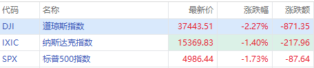 标普500指数目前转而下跌1.73%,道指转而下跌871点跌幅2.27%,纳指跌1.4%。