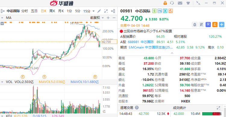 市场憧憬加快国产芯片研发,芯片股逆市造好,中芯( $00981.HK )曾急升11%,重上40港元水平,即市资金倾向继续流入相关好仓。