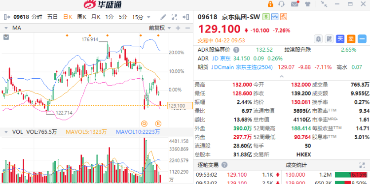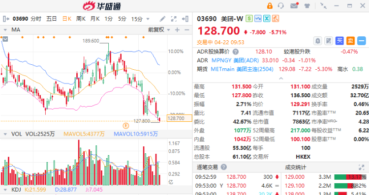 美团、京东外卖之争持续升级,两者股价今日早盘集体大跌,截至发稿,美团-W跌超5.5%,京东集团-SW大跌超7%。