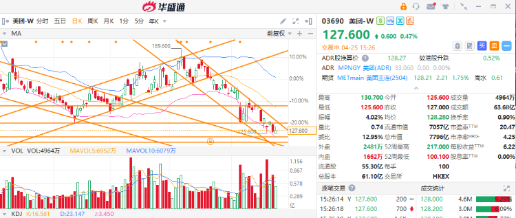美团今日在月线130港元水平好淡争持,上日跌超过5%。美团-W(03690)和京东集团-S在商户佣金、骑手待遇、用户补贴等方面相继推出新措施。