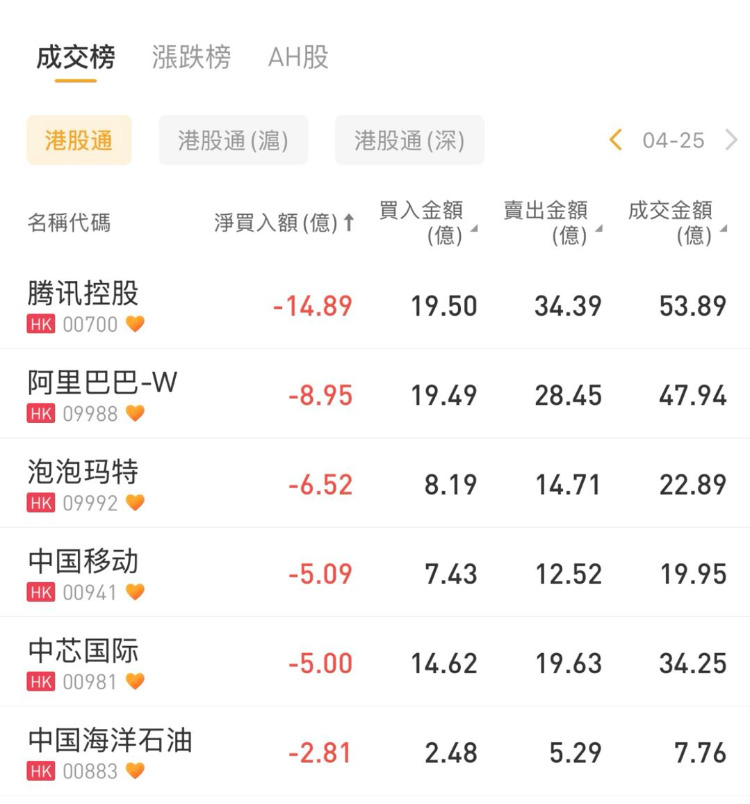 南向资金今日净卖出港股70.19亿港元,其中港股通(沪)净卖出21.59亿港元,港股通(深)净卖出48.61亿港元。