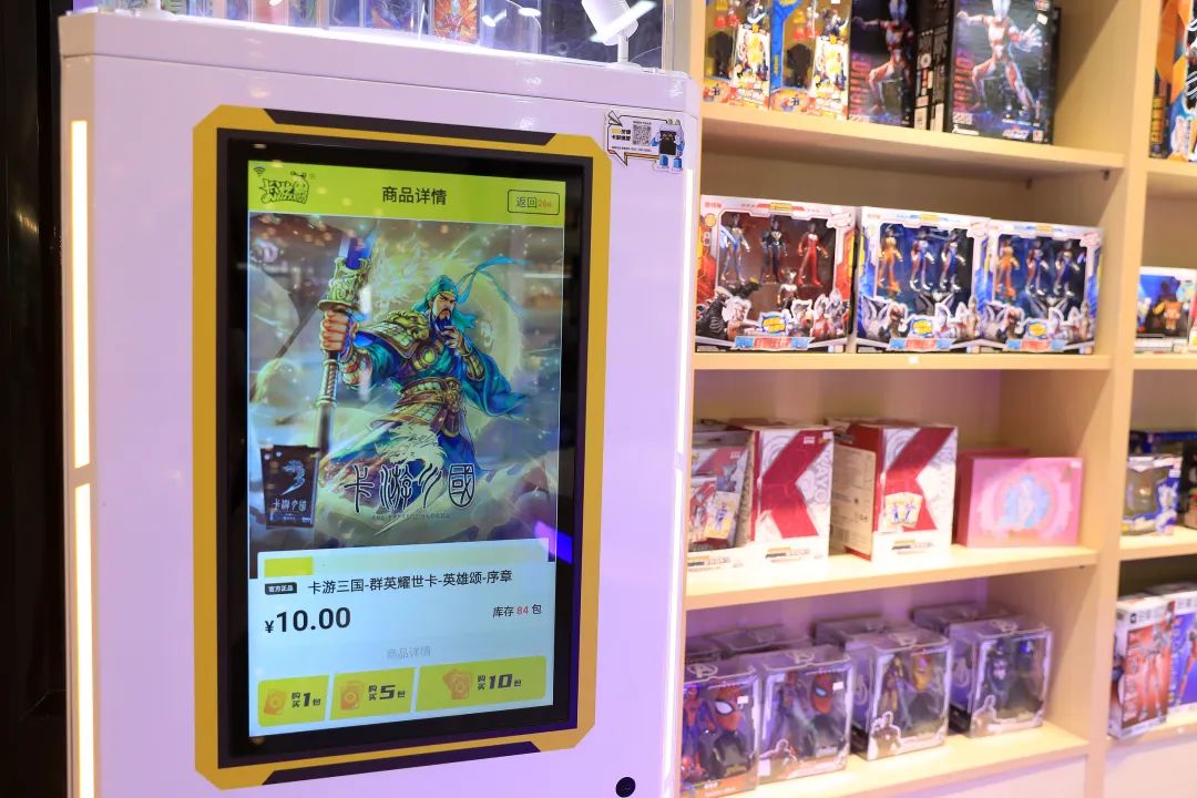 从城市核心商业区的中高端潮玩店,到街头巷尾的小型零售商店,大量的终端门店形成了一张庞大的销售网。即使在四、五线城市,年轻人也能轻松地在一家文具店或动漫谷子店里,找到卡游的各类卡牌。
