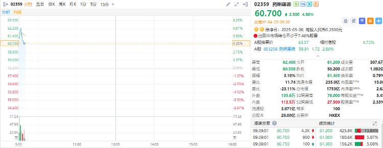 药明康德 $02359.HK 早盘一度走高涨超6%,现涨4.3%,报60.7港元。