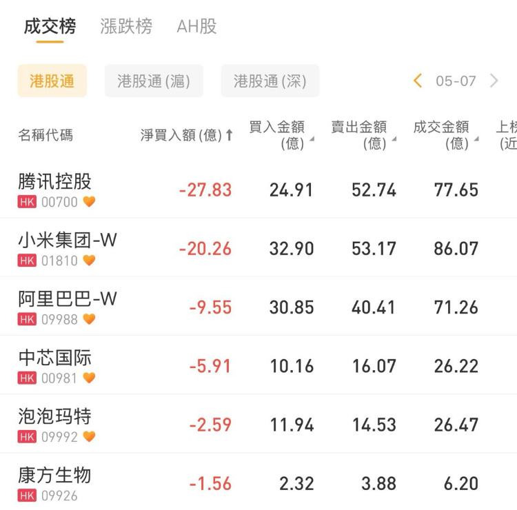 南向资金今日大幅净卖出78.65亿港元,其中港股通(沪)净卖出41.78亿港元,港股通(深)净卖出36.88亿港元。