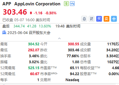 周三美股盘后,Applovin(APP.US)公布第一季度业绩。数据显示,该公司Q1营收为14.8亿美元,同比增长40%,超出市场预期;调整后的每股收益为1.67美元,也超出市场预期。AppLovin同意将其移动游戏部门出售给伦敦的Tripledot Studios,以专注于广告技术业务。