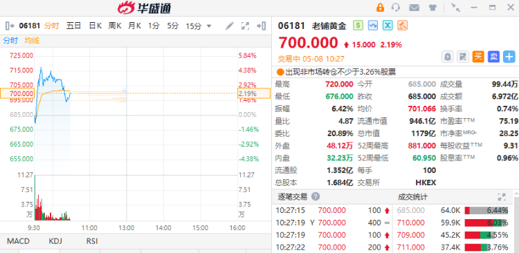 注:老铺黄金近两日的走势
