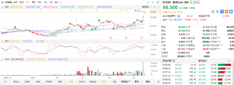 腾讯音乐-SW绩后涨超7%,近两个交易日累涨逾20%!ARPPU增长稳健 一季度纯利同比增长22.8%。