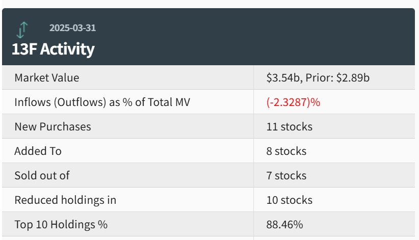整体而言,一季度景林持仓总市值从上季末的31.7亿美元增至32.3亿美元,增持或新建仓14只股票,减持或清仓21只股票,前十大仓位集中度达到86.24%。