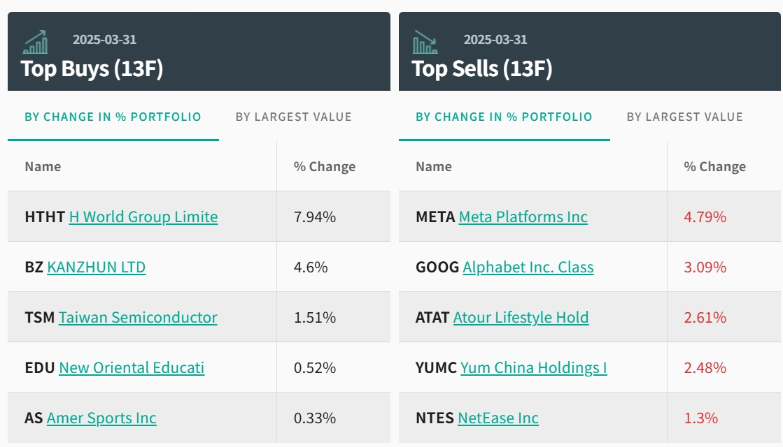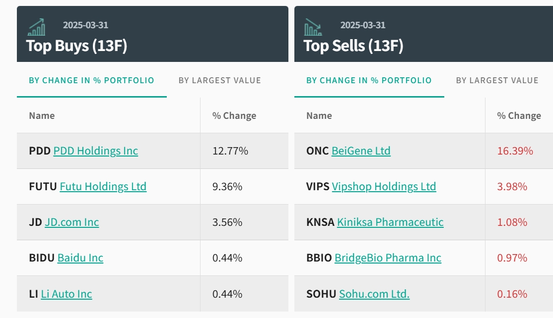 今年一季度,HHLR Advisors继续重仓中概股的趋势明显。