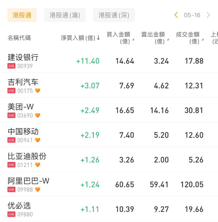 建设银行 、吉利汽车、美团-W分别获净买入11.40亿港元、3.07亿港元、2.49亿港元;