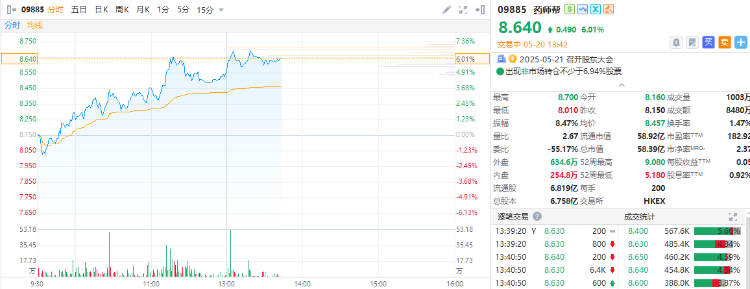 此外,药师帮本月初公告,公司董事会拟根据2024年股东周年大会授予的股份回购授权,于2025年股东周年大会前不时在公开市场回购股份,动用金额不超过1亿港元。首次回购已于2025年5月7日进行,回购30万股,总金额约为210.44万港元,平均回购价为每股7.01港元。回购股份将适时注销。
