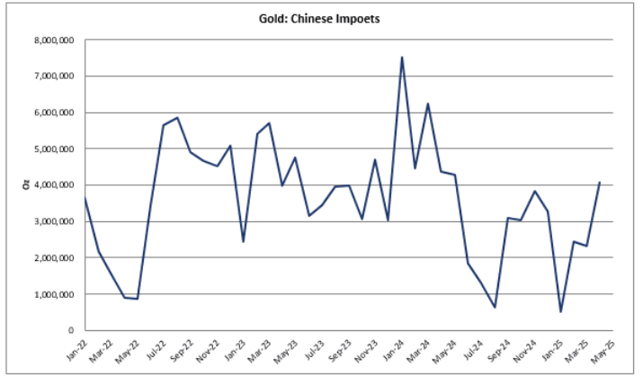中国4月黄金进口量(除央行外)反弹至一年高点,很可能是受上海黄金交易所(SGE)较伦敦金银市场协会(LBMA)溢价走强的驱动。值得注意的是,即便金价处于高位,实物买盘依然坚挺。