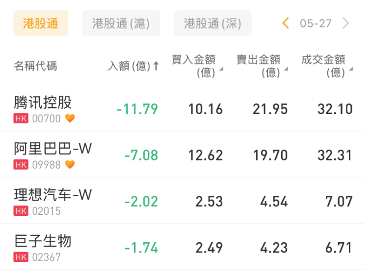 腾讯控股、阿里巴巴-W、比亚迪股份分别遭净卖出11.79亿港元、7.08亿港元、2.02亿港元。