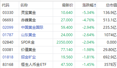 5月29日,黄金股跌幅居前,截至发稿,灵宝黄金跌超5%,赤峰黄金跌超4%,中国黄金国际、山东黄金跌超2%。