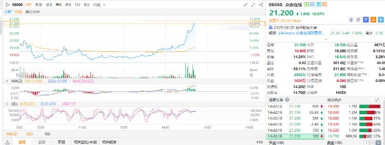 值得注意的是,众安在线受稳定币政策利好推动,午后拉升涨超10%,上周股价累计上涨54.82%。