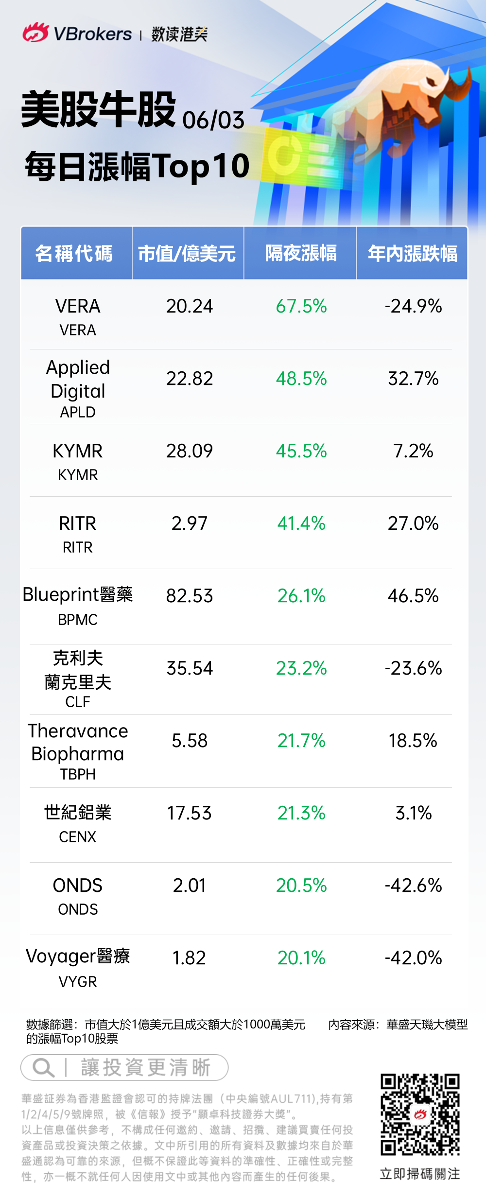 编者按:《美股牛股》栏目旨在追踪每日美股市场涨幅TOP10牛股,紧抓涨势迅猛的个股,助力投资者快速把握美股交易机会。
