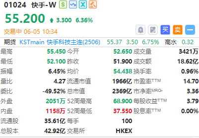 快手-W涨超6%,可灵AI近期推出全新2.1系列模型,机构看好其盈利能力加速提升。