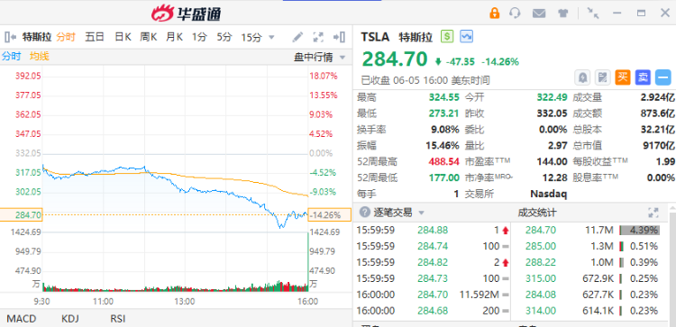 马斯克与特朗普从合作走向决裂,受此影响,特斯拉股价周四下跌逾14%,创下史上最大单日跌幅,市值蒸发了1520亿美元(约合10922亿人民币),跌破了1万亿美元的门槛。
