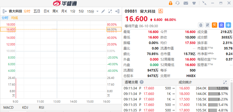 华盛资讯06月10日讯,港股容大科技今日挂牌,截至发稿涨66.00%,报16.60港元/股,中签一手赚3300.0港元,最新总市值超15.73亿港元。该股此前香港公开发售获275.96倍认购。