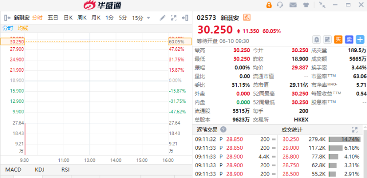 港股新琪安今日挂牌,截至发稿涨60.05%,报30.25港元/股,中签一手赚2270.0港元,最新总市值超29.11亿港元。该股香港公开发售获149.37倍认购。