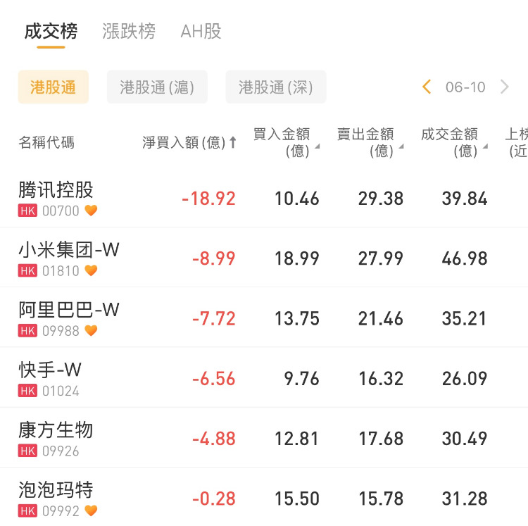 腾讯控股、小米集团-W、阿里巴巴-W分别遭净卖出18.92亿港元、8.99亿港元、7.72亿港元。