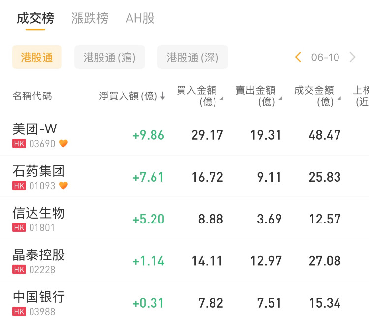 美团-W、石药集团、信达生物分别获净买入9.86亿港元、7.61亿港元、5.20亿港元;