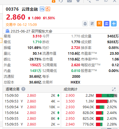 6月12日消息,港股蚂蚁金服概念股上扬,云锋金融一度涨超90%,现涨61%;耀才证券金融涨超12%,阿里健康、阿里影业涨超4%。