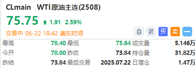 受周末中东局势升级影响,布伦特原油一度涨5.7%,报81.40美元/桶。彭博数据显示,WTI原油期货一度飙涨超6.17%,报78.40美元。现货黄金涨0.8%,报3395美元/盎司。美国国债期货持平(美元指数和美债现货将于北京时间08:00开盘)。美元兑日元涨幅显著收窄至0.2%,退守146.40日元下方。标普500股指期货跌0.8%。