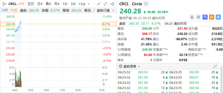 稳定币第一股Circle续涨超8%,上市以来已累涨近700%。