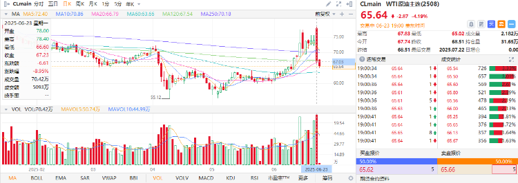 WTI原油高开后闻讯转跌,截止发稿,短线大跌4%,隔夜国际油价已经暴跌9%!同时,现货黄金跌破3360美元/盎司,日内跌0.26%。