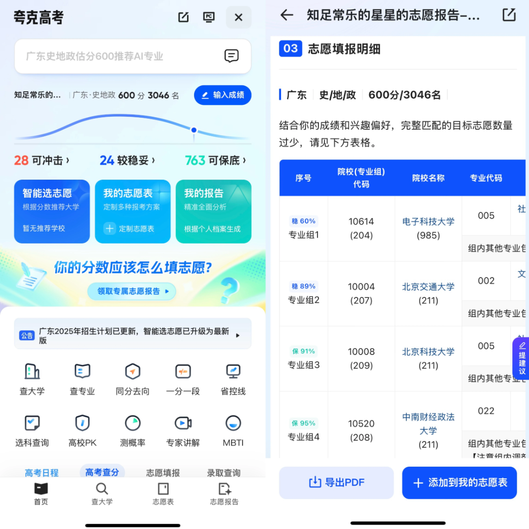 夸克今年也上线“高考深度搜索”、“志愿报告”、“智能选志愿”三大核心功能。