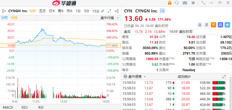 具体行情显示,Cyngn Inc盘中一度涨近700%。截至收盘,该股收涨171.46%。