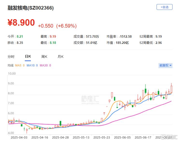 今日涨6.59%,全天换手率45.66%,成交额51.01亿元,4月9日以来累计涨超95%。