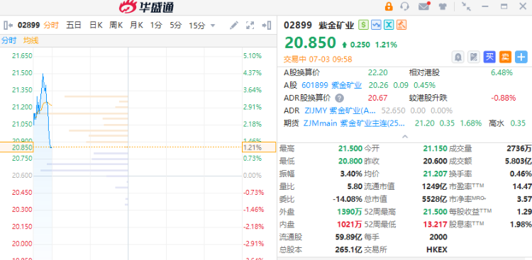 港股黄金股继续上涨行情,紫金矿业一度涨超4%创历史新高,潼关黄金、中国白银集团涨超2%,中国黄金国际涨近2%,赤峰黄金、招金矿业跟涨。