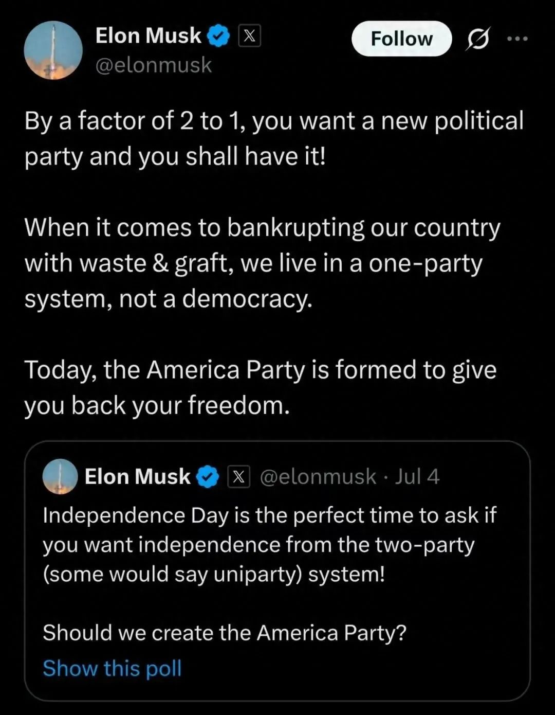 这场政治豪赌的结局尚未可知,但历史经验昭示:在美国政治舞台上,第三党的角色注定不是主角,而是变革的催化剂。马斯克或许无法打破百年魔咒,但“美国党”的诞生本身,已然成为对美国政治生态的一次重大压力测试。