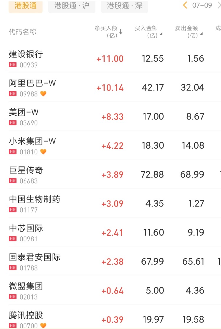 建设银行、阿里巴巴-W 、美团-W分别获净买入11亿港元、10.14亿港元、8.33亿港元。