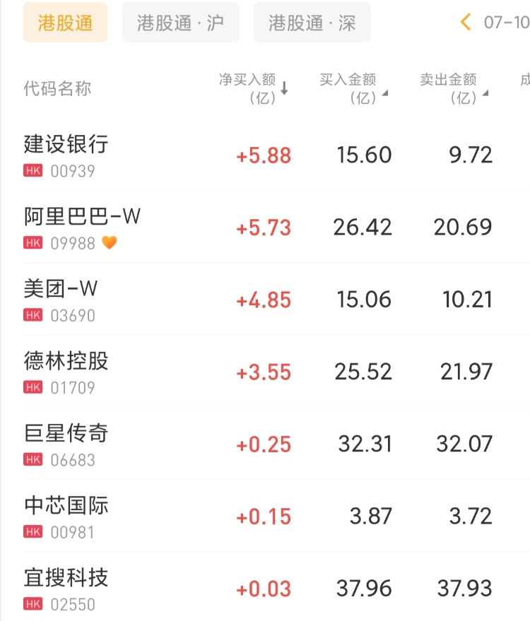建设银行、阿里巴巴-W 、美团-W分别获净买入5.88亿港元、5.73亿港元、4.85亿港元。