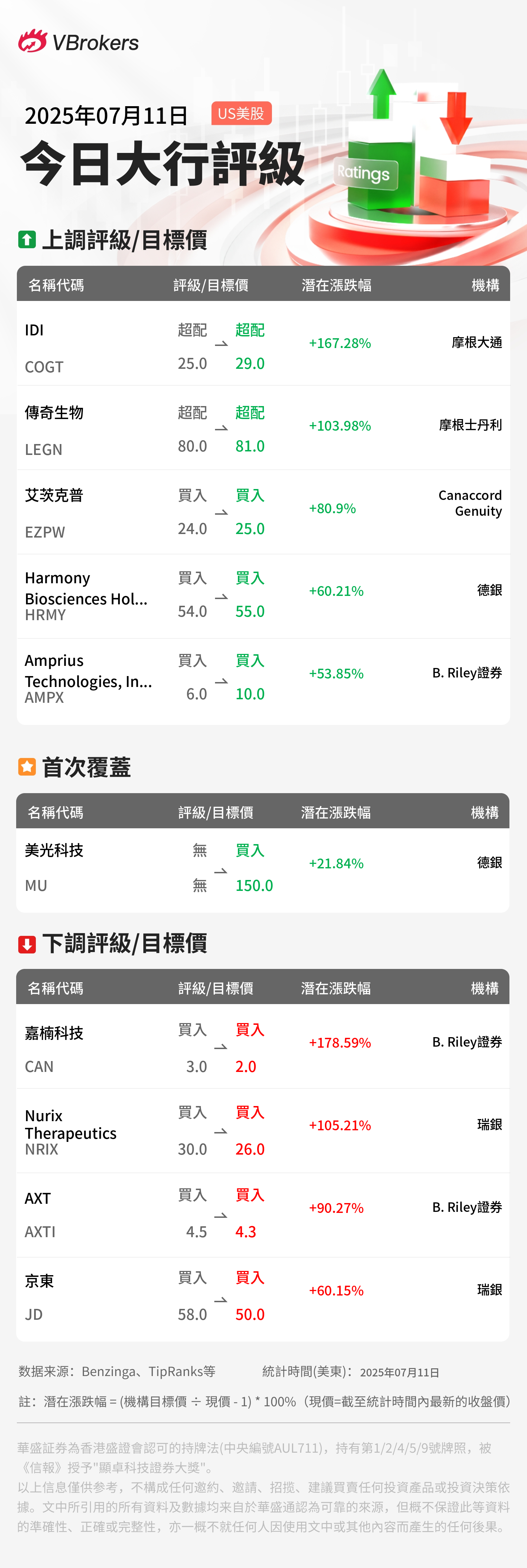 | 摩根大通 | IDI | COGT | $10.85 | 上调 | $29.0 | 167.28% |
