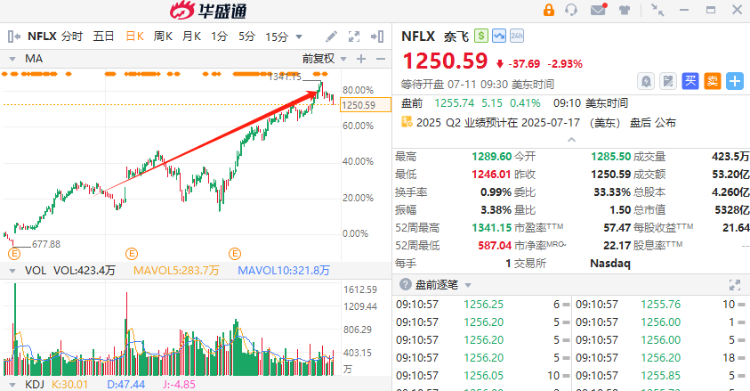 Netflix股价今年表现亮丽,2025年至今已上升约43%,反映投资者对其增长前景及应对经济挑战的能力充满信心。该股周二收报1,275.31美元,仅略低于历史高位。
