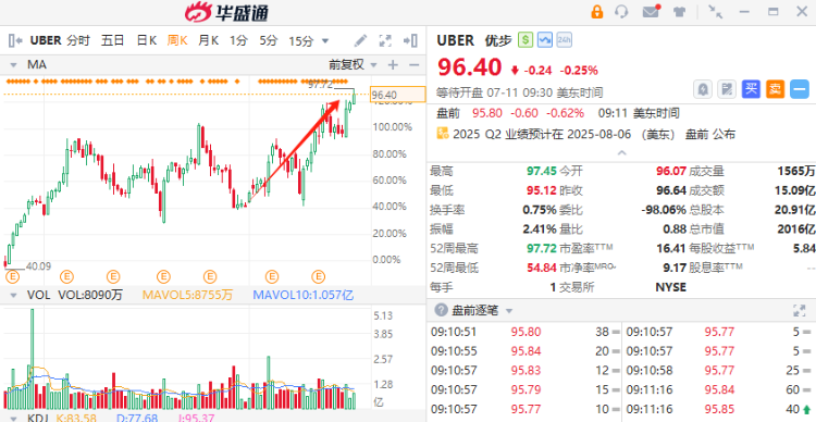 Uber股价今年表现出色,至今升幅达61.6%,这得益于其载客和外送业务的强劲增长,以及在自动驾驶领域扩大合作。该股于周二收报97.48美元,创下历史新高。