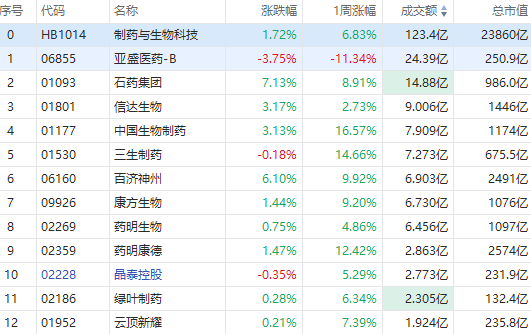 7月15日消息,港股创新药板块午后走高,康宁杰瑞制药-B涨超12%,石药集团涨7%,百济神州涨超6%,信达生物、中国生物制药涨超3%。