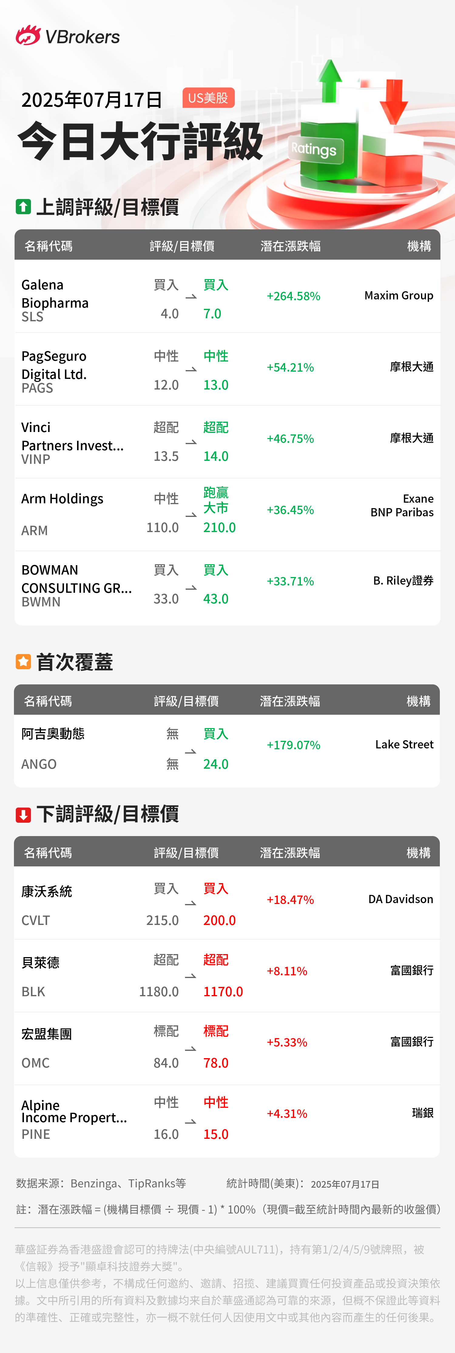 | B. Riley證券 | BOWMAN CONSULTING GROUP LTD. | BWMN | $32.16 | 上调 | $43.0 | 33.71% |