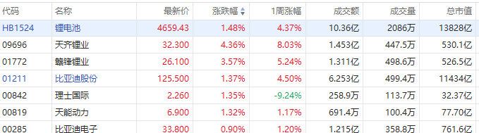 智通财经APP获悉,锂业股早盘再度走高,截至发稿,天齐锂业(09696)涨超4%;赣锋锂业(01772)涨超3%。