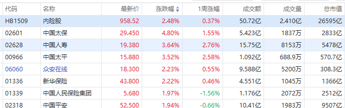 内险股今日普涨,截至发稿,中国太保涨近5%,中国人寿、中国太平、中国太保涨超3%。