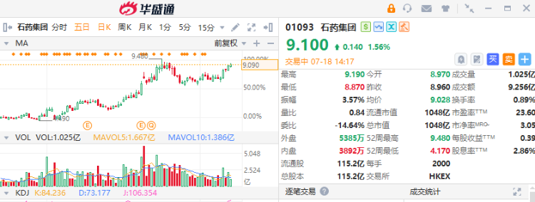 石药集团3个交易日均获好仓净流入,看好留意石药购 $17622.HK