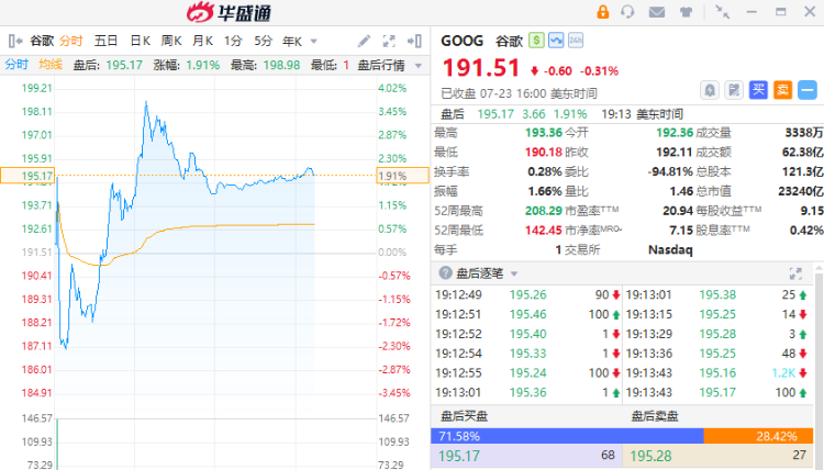 谷歌盘后股价涨近2%,谷歌母公司Alphabet二季度营收964.3亿美元,分析师预期939.7亿美元。二季度资本开支224.5亿美元,分析师预期182.4亿美元。二季度运营利润312.7亿美元,分析师预期310.7亿美元。