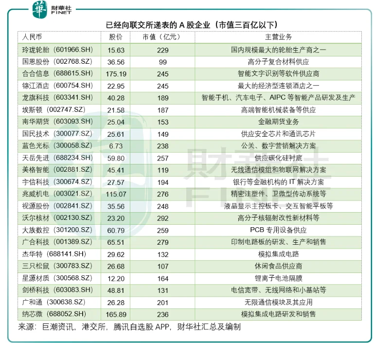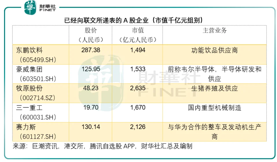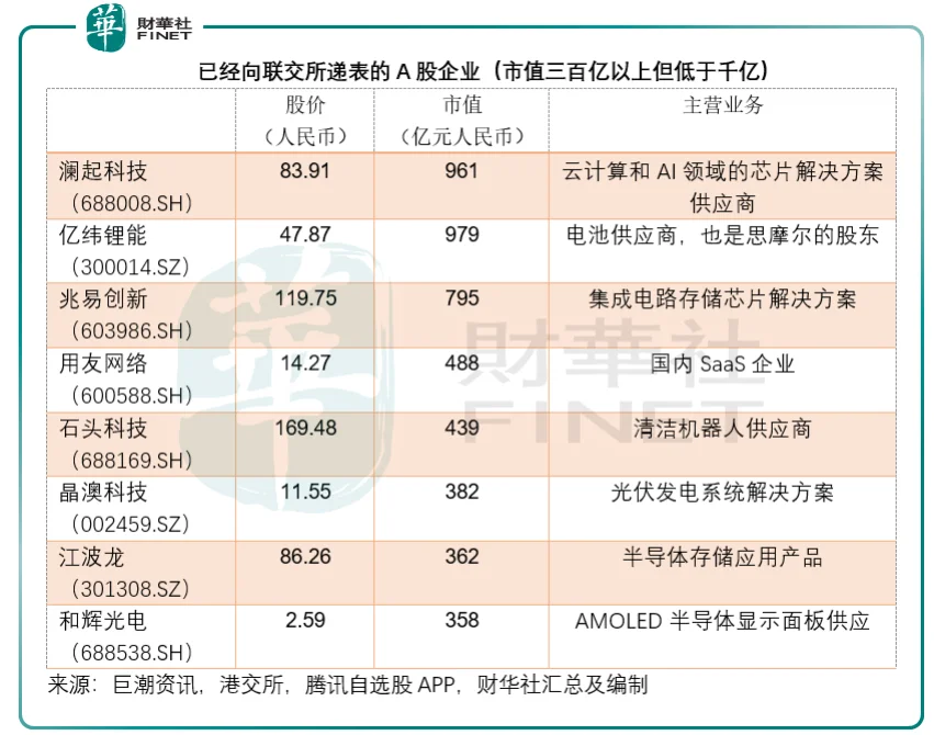 这其中,不乏港股投资者会感兴趣的题材,芯片解决方案供应商澜起科技(688008.SH),电子烟龙头思摩尔国际(06969.HK)主要股东之一的锂电池供应商亿纬锂能(300014.SZ)、前称韦尔股份的图像传感器解决方案供应商豪威集团(603501.HK)与华为合作的赛力斯(601127.SH)等等,见下表。